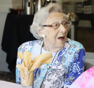 There are 10 current centenarians at St. John’s Meadows. Residents Molla Carr, 100 years of age; Alice Morse, 102; Peter Affolter, 101; James Mead, 100, and Jackie Stricker, 102, were in attendance. Other centenarians who were unable to attend include Ruth Weiss, 101; Mason Fitch, 100; Bea Briggs, 101; Renee Cowen, 100; and Mei Hwag, 101.